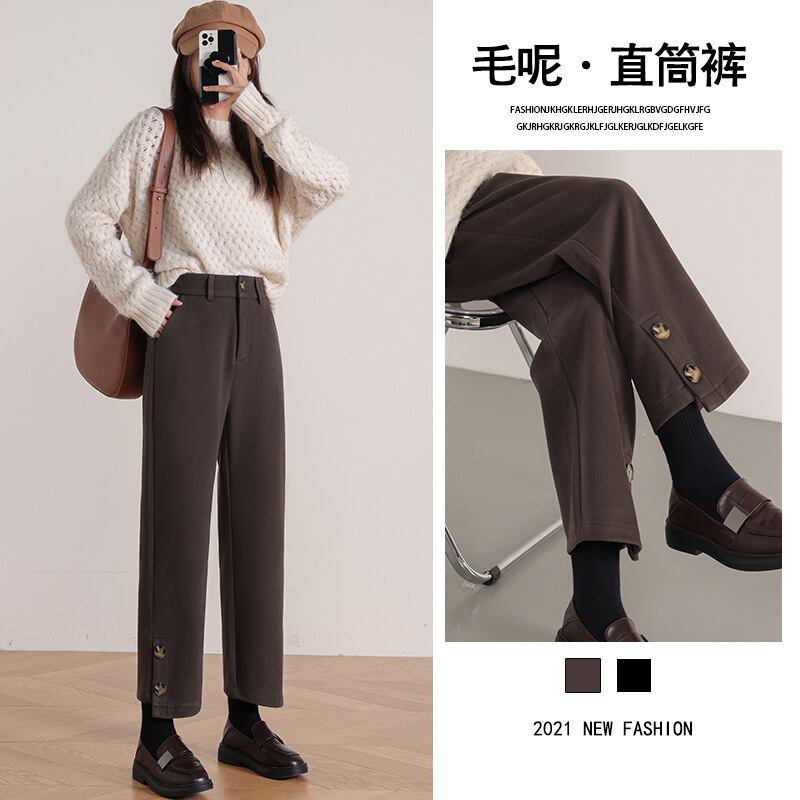 2023年秋冬新作人気の洋ナシ型ボディウールブラウンスーツパンツ、女性用、ストレート、ワイドレッグパンツ764