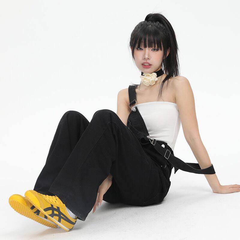 デニムの背もたれのズボンの女性2023春夏の新型の青いゆるいストレートのズボンのカジュアルズボン771