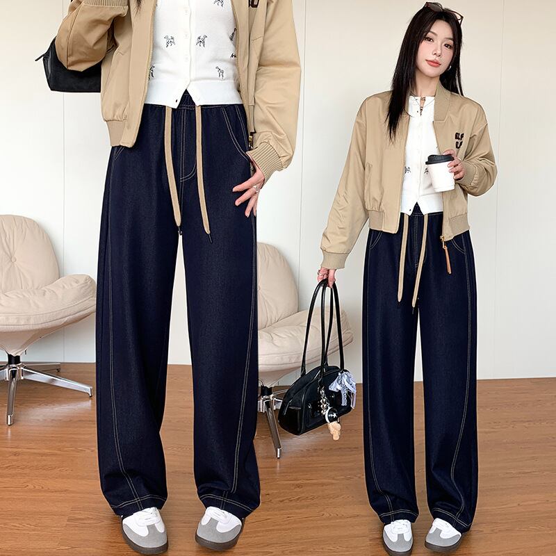 紺色の明るい線 2025年春 2025年春 ワイドレッグパンツ カジュアルパンツ775