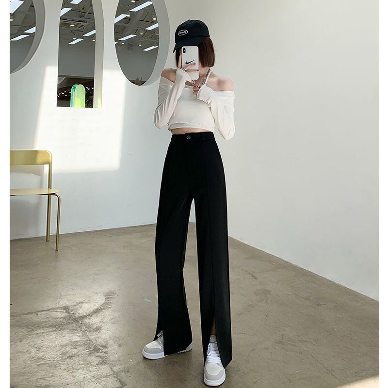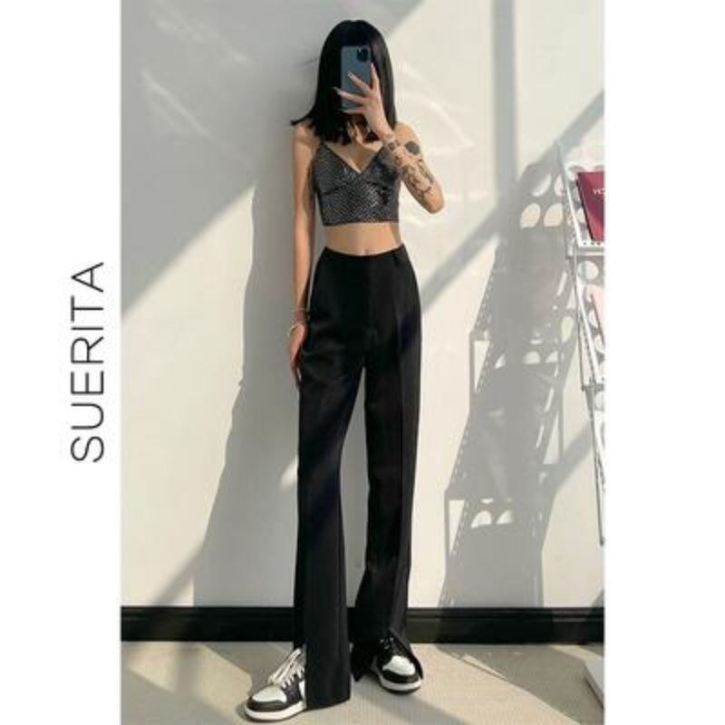 スーツパンツ、女性用ドレープ、ハイウエスト、スリミングワイドレッグパンツ、ストレートフィットパンツ、ロングパンツ795