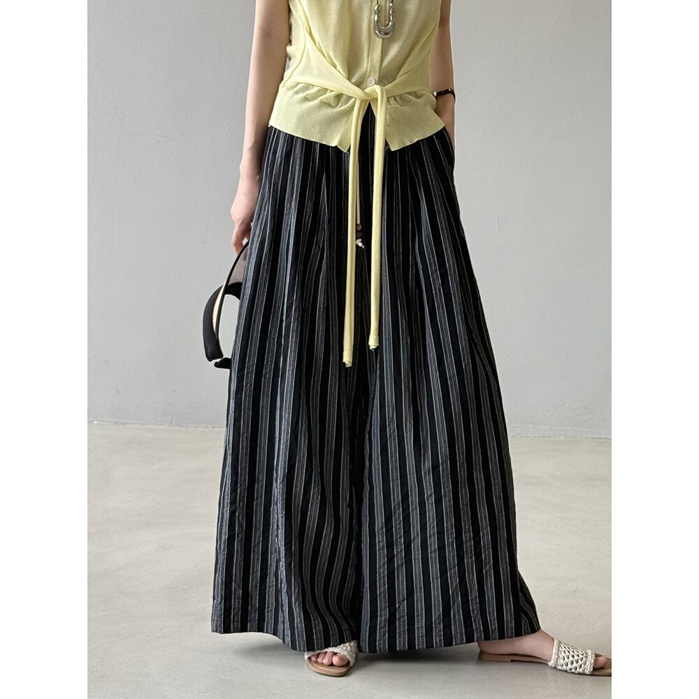 縦縞の広い足のカジュアルなズボンの女性の夏の薄いタイプゆったりズボンの亜麻のズボン843