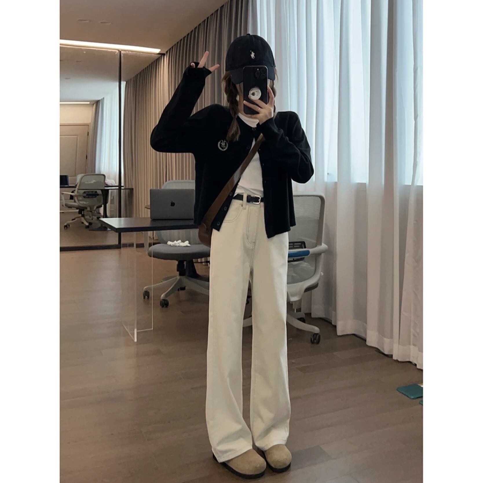 スリープルーフ生地、オフホワイトのストレートジーンズ、多用途、スリミング、刺繍、ストレートレッグパンツ、ラグジュアリー882