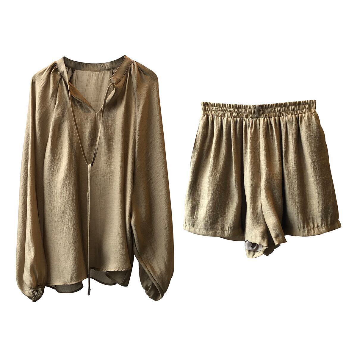 カジュアルストラップ日焼け止めセット女性2024春新作ファッション長袖シャツ広脚半ズボン887