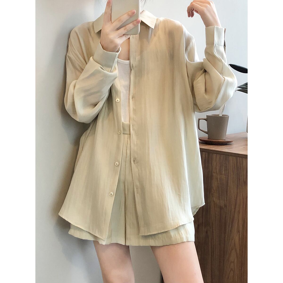 通気日焼け止めシャツセット女2023夏ゆるい薄いシャツ広脚パンツ女893