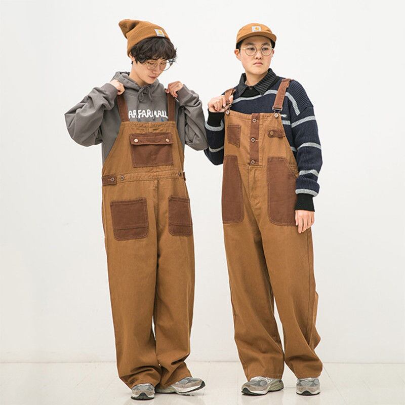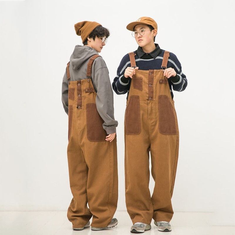 日系レトロブラウン色合わせ中性バックパンツの両面にカップルのゆるいストレートパンツ918