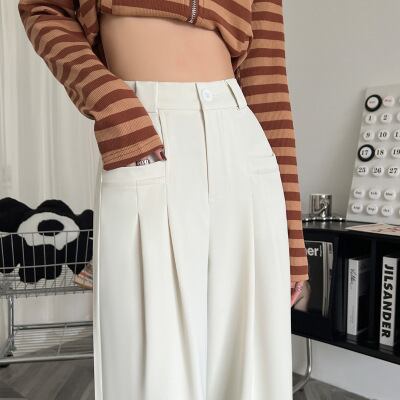 グレーのワイドパンツの女性2023秋の新しいズボンの高腰の垂直感のカジュアルなズボンスーツズボンストレートパンツ940
