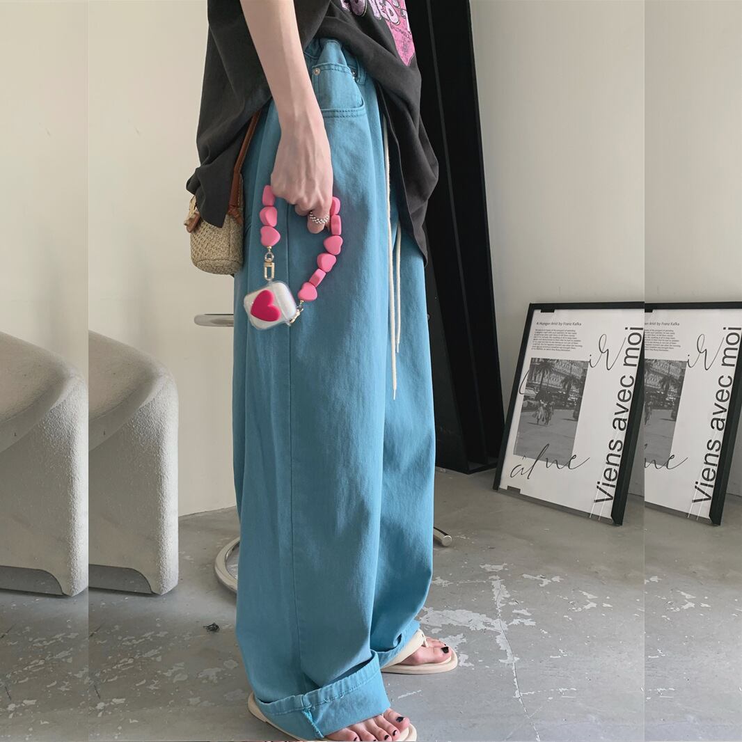 直筒の高い腰キャンディーの明るい色 2023春 ハイウェスト ストレートパンツ952
