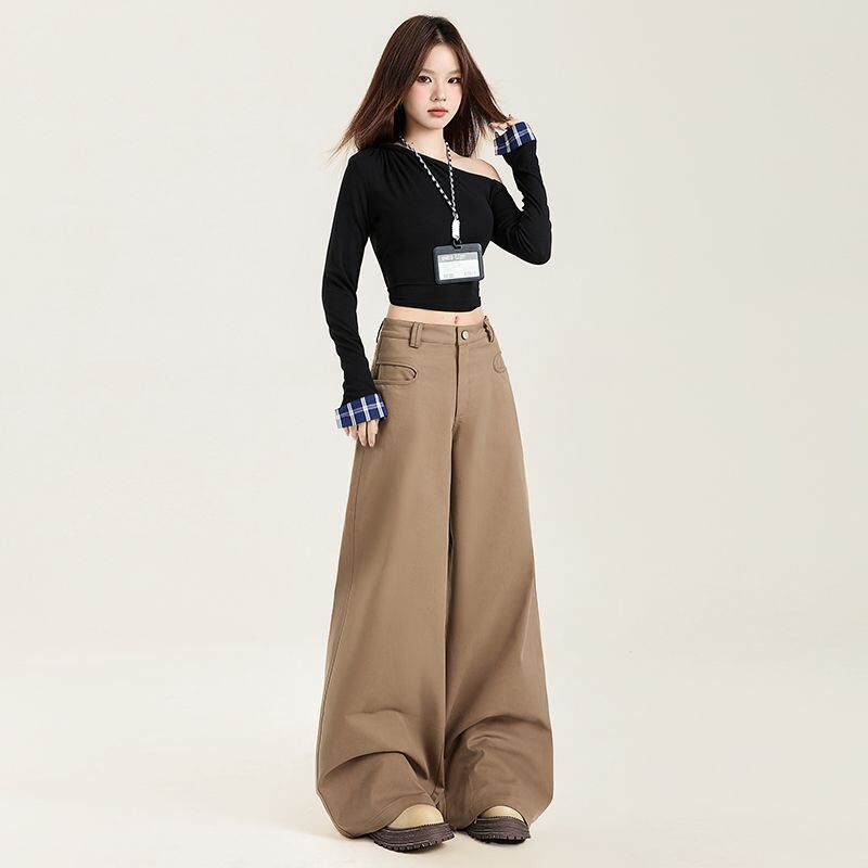カーキ色のカジュアルパンツ女性2024春秋ゆるいストレートファッション992