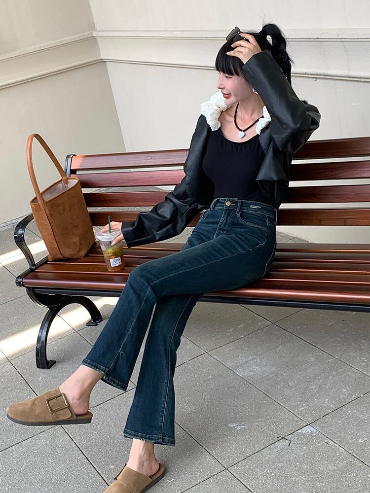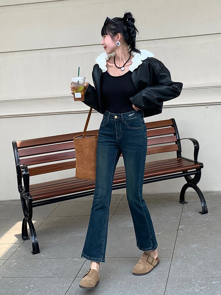 女性用のエレガントなフレアジーンズ、初秋向けの新しい韓国スタイル、ハイウエスト、伸縮性、スリムフィット、小さいサイズ994