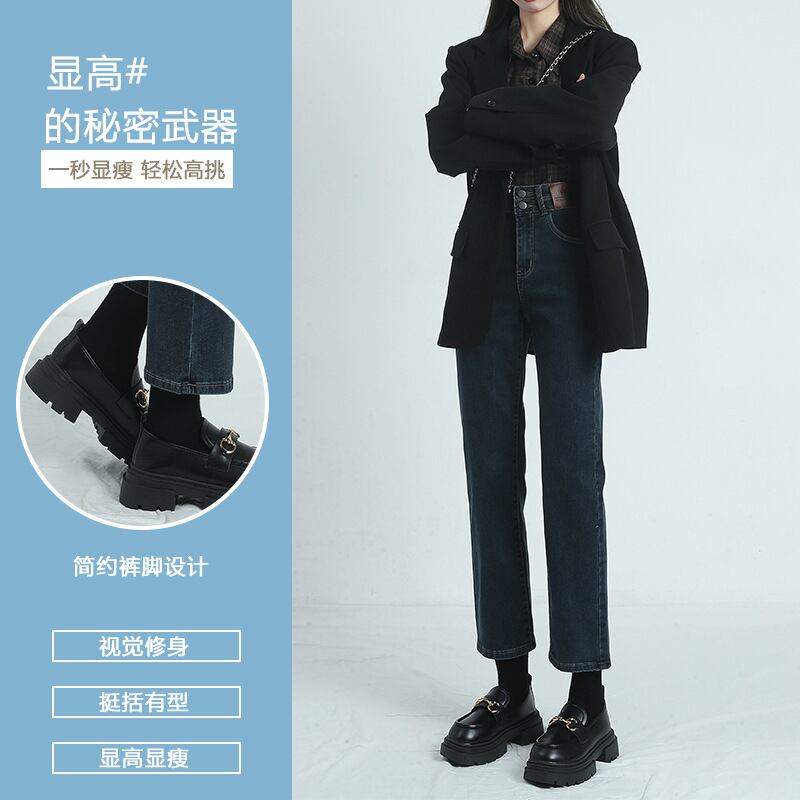 ストレートジーンズの女性の秋冬の2024年の新型の高い腰のベルベット998